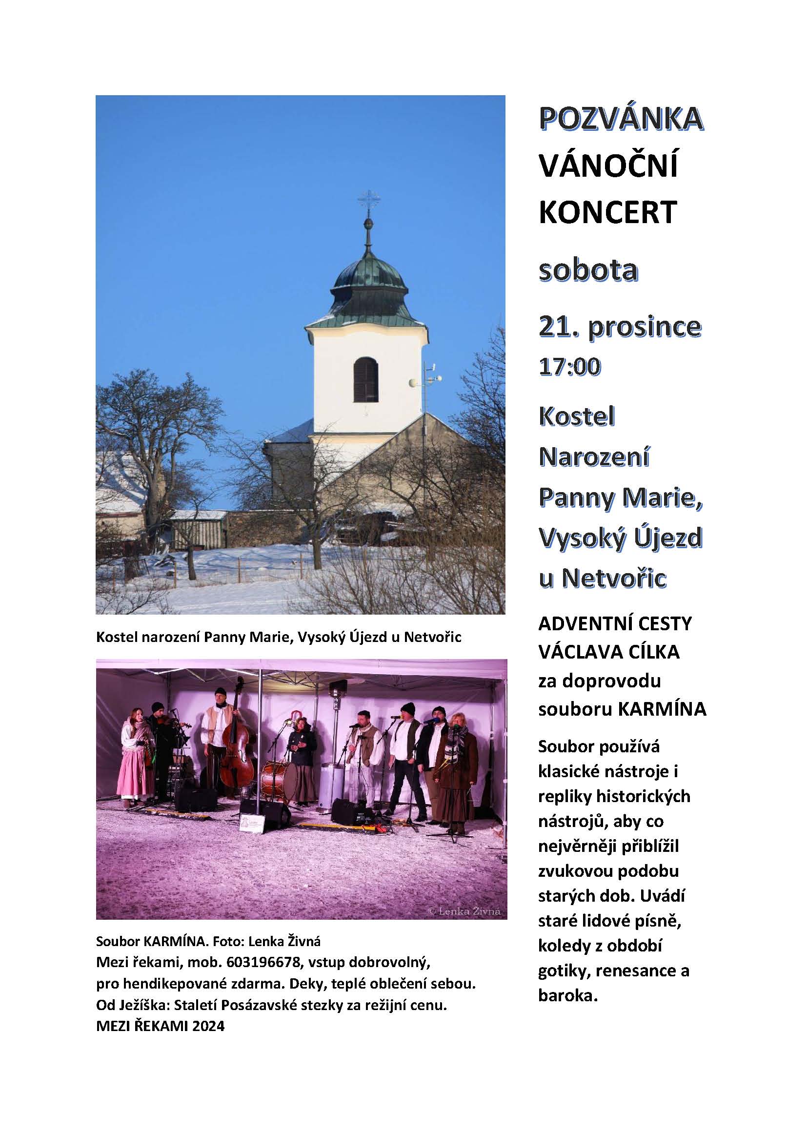 Pozvánka na Vánoční koncert v kostele narození Panny Marie - Vysoký Újezd 21.12.2024
